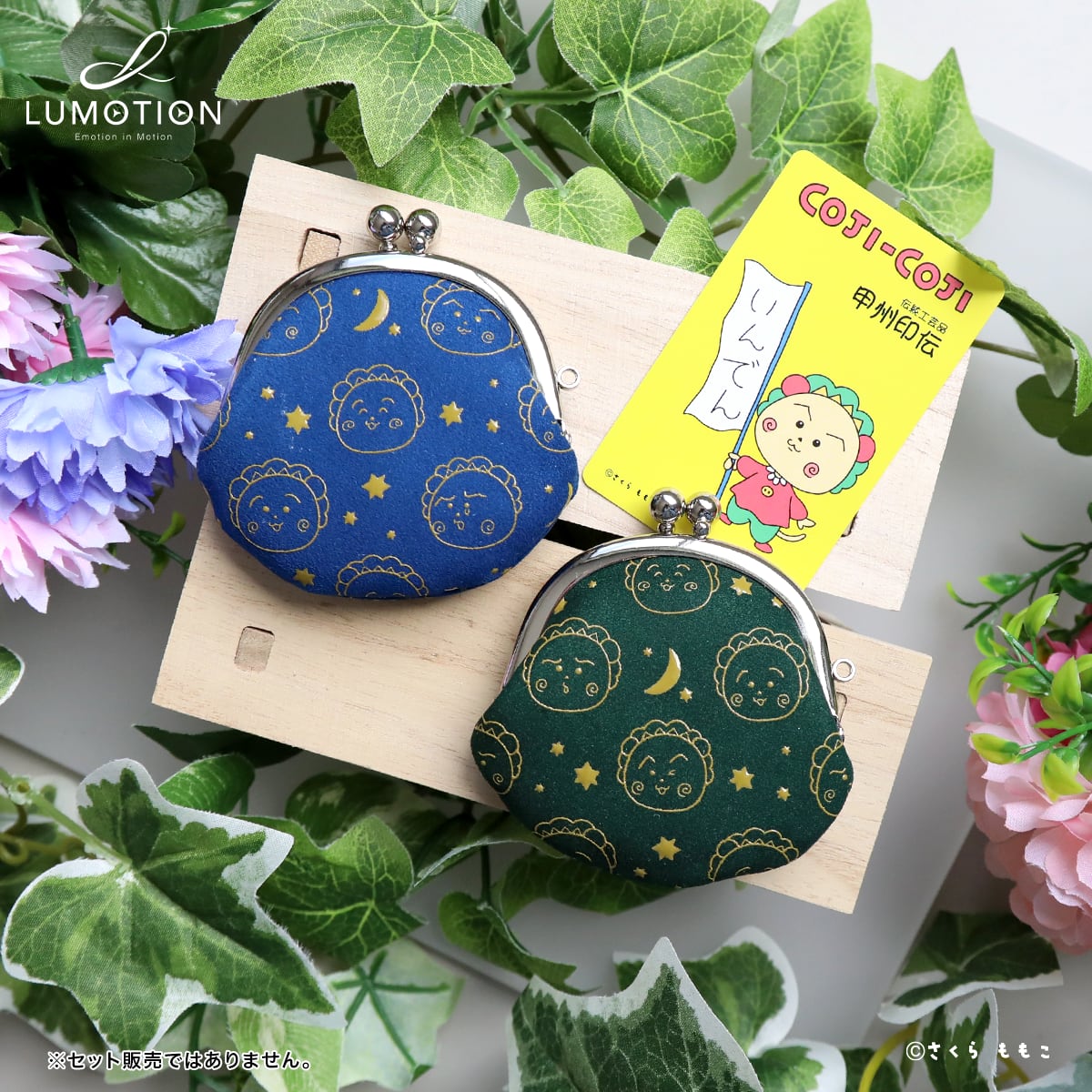 COJI-COJI × 甲州印伝 平がま口|印伝の山本製 鹿革 コジコジ オリジナル柄 黄色漆 濃藍 海松藍 ギャランティカード付 日本製
