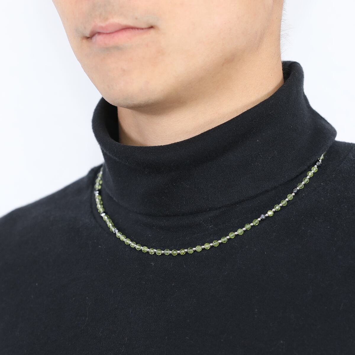 愛称の<Kiwi(キウィ)>は、ペリドットの黄緑色にちなんでいて、果物の「キウイ」をイメージした商品名になりました。キウィカラーが瑞々しく、フレッシュな印象を与えるネックレスです。